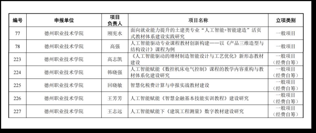 近日,教育部职业院校信息化教学指导委员会对2026年度“人工智能+职业教育智慧教材体系化建设项目”立项结果进行了公示,其中我校7项项目获批立项。